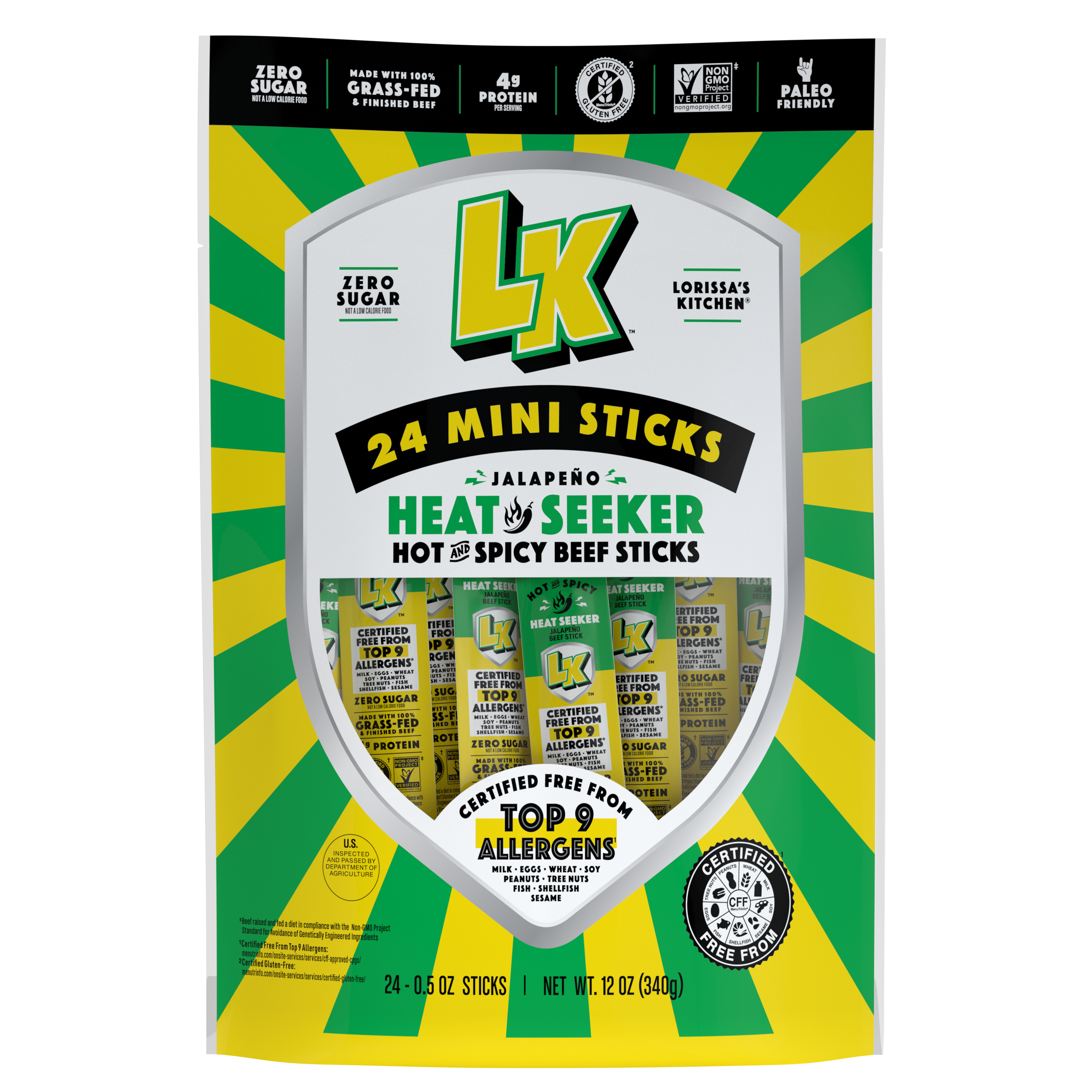 Turn up the heat with our Heat Seeker Jalapeño Mini Beef Sticks made with real ingredients and craveworthy flavor. This fiery protein snack is gluten free and has 4g of protein. When those afternoon cravings hit, Snack Fearlessly and devour the fiery, smoky, and savory explosion of taste all with zero mess. Turn the ordinary into the extraordinary.